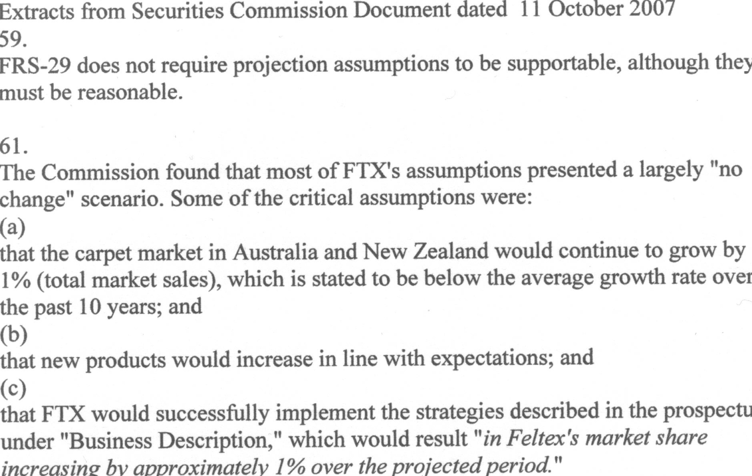 in relation to the 1990 Bank of New Zealand annual accounts and the 2004 Feltex IPO.